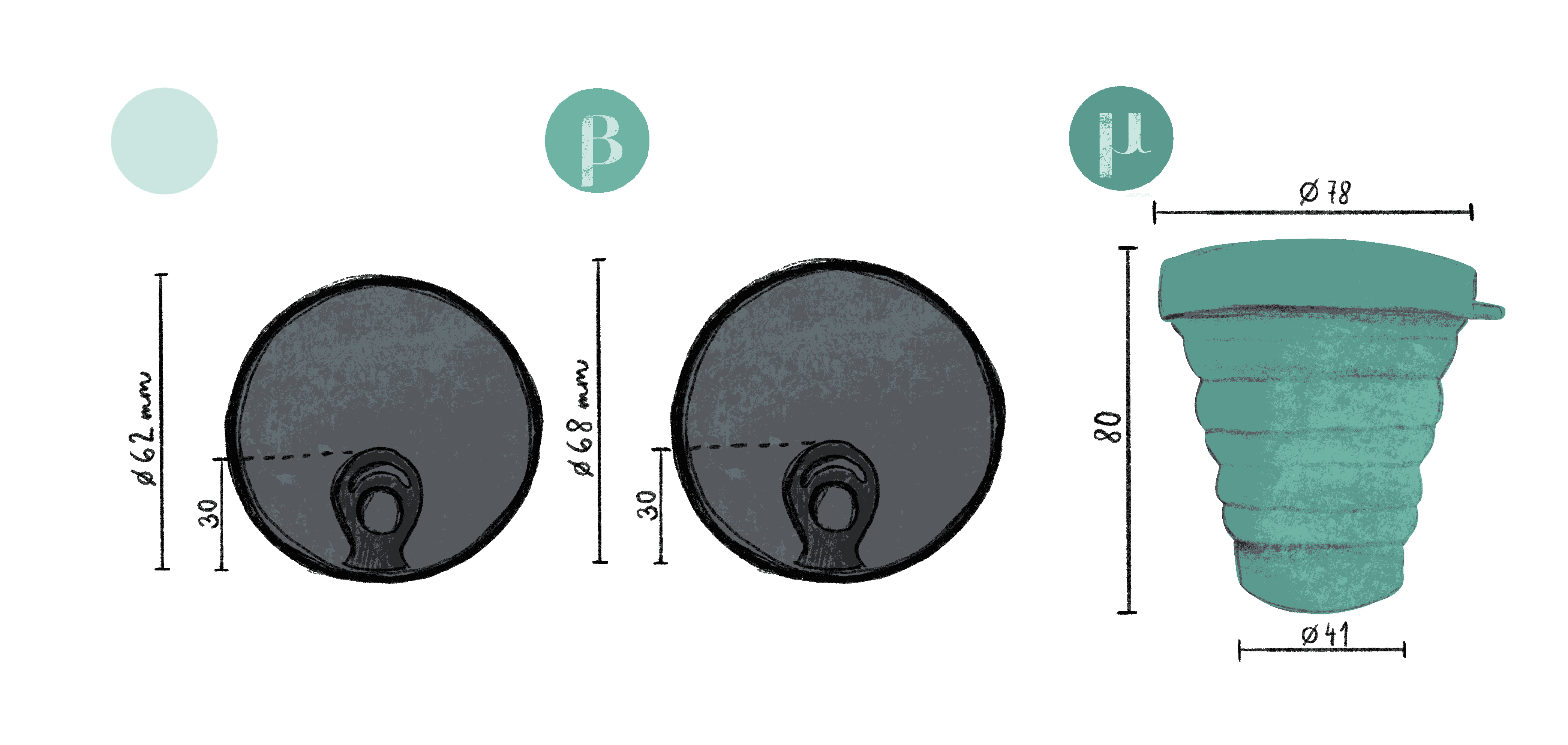 A gyártó az α méretet alacsony méhszájhoz ajánlja, míg a β méretű diszket – ami kvázi-univerzális méret – magas/közepes méhszájhoz ajánlja.